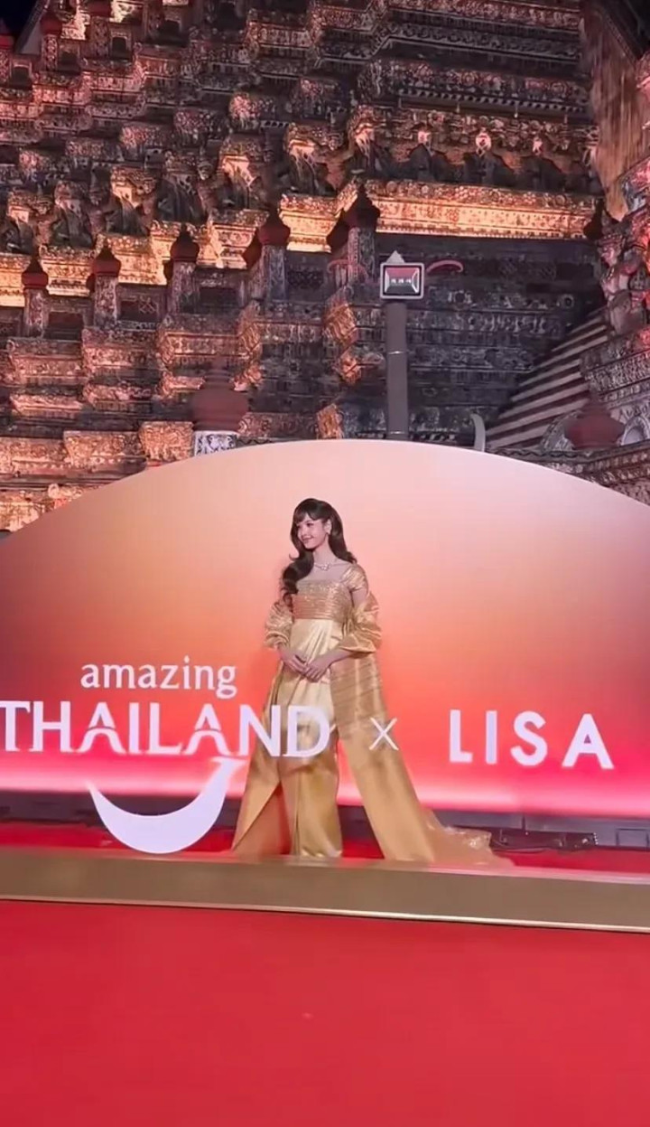 能以旅游大使的身份出席,真的是对Lisa实力的认可,毕竟她现在真的都成了泰国的代名词了。她走到印有泰国和她名字的舞台跟前拍照,背后就是泰国标志性的旅游景点,这一刻景色和她都美的让人震撼。